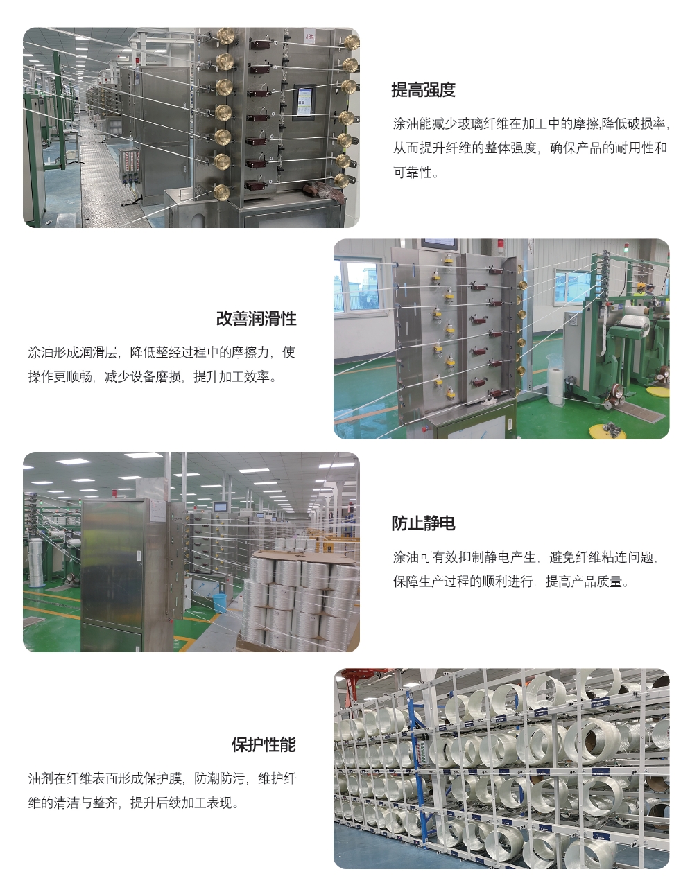 涂油柜是玻璃纖維生產(chǎn)線中的一種設(shè)備,主要用于對紗線進行涂油處理。涂油柜通常由涂油槽、輸送系統(tǒng)、涂油輥和控制系統(tǒng)等組成,其作用是在紗線表面形成一層薄膜,提高紗線的柔軟性和潤滑性,減少紗線之間的摩擦和斷裂。